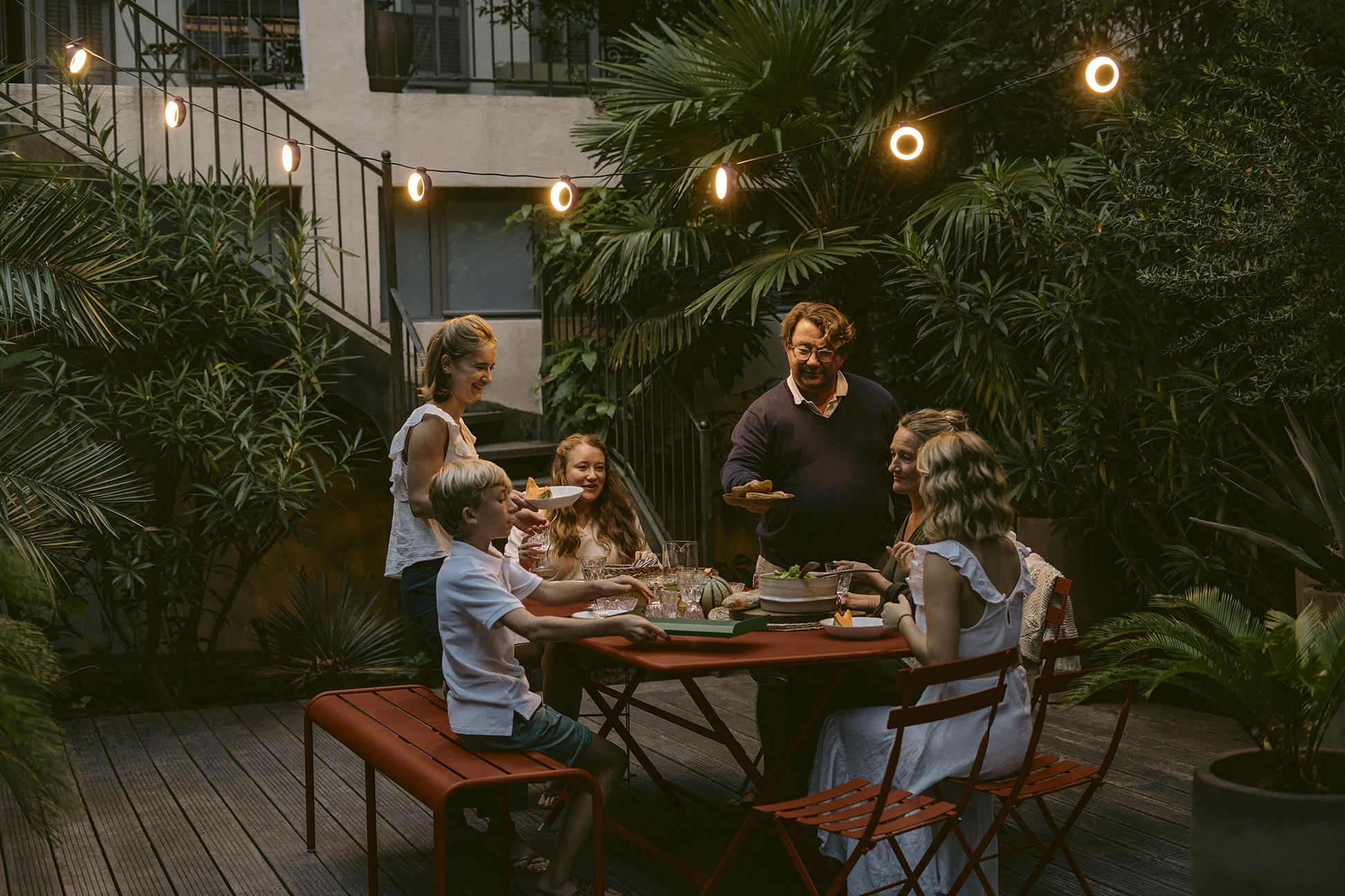 Grâce à son interrupteur variateur tactile, vous pourrez créer l'atmosphère qui vous ressemble... La guirlande extérieure L1200 Hoopik propose une température d'éclairage chaleureuse (3000°K) variable en intensité (de 10 à 100%). Equipée de la technologie Bluetooth, les différents scénarios d'éclairage se composent, du bout des doigts, via l'application Fermob Lighting ou l’interrupteur connecté Ludo. Vous souhaitez créer un coin tamisé sur votre terrasse ou dans votre jardin ? Au contraire, vous avez besoin d'un éclairage puissant pour illuminer vos grandes tablées jusqu'au bout de la nuit ? Notre guirlande à leds s'adapte à toutes vos envies.